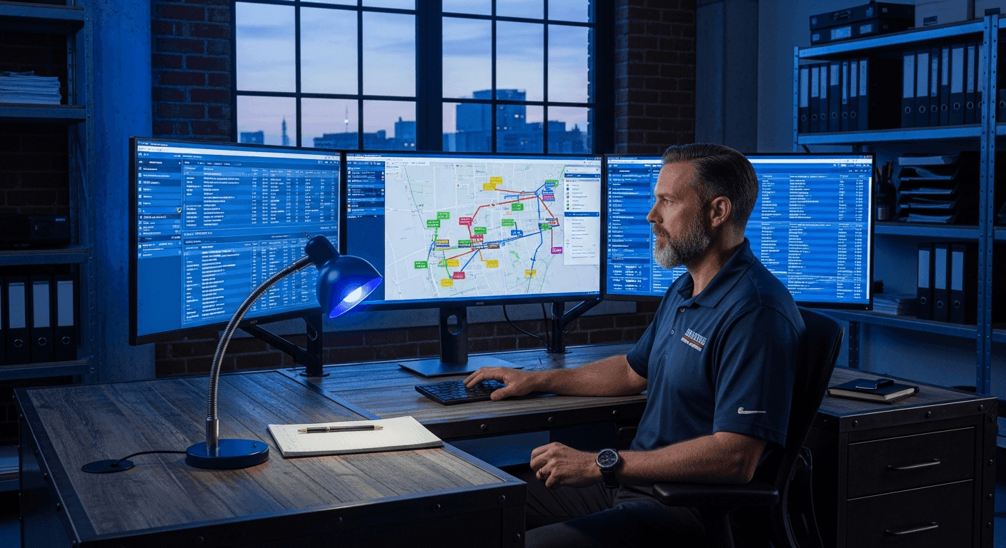 You are managing emergency dispatch, service agreements, workforce planning, and flat-rate pricing across 12 branches. No single system shows you the full picture.
